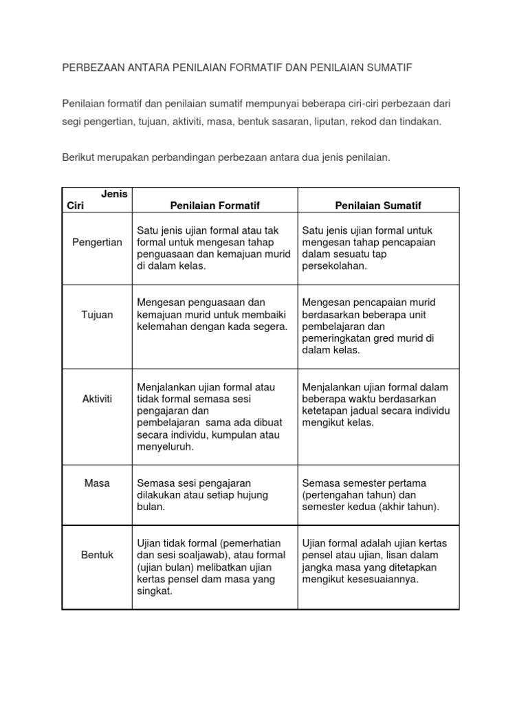 Perbezaan Penilaian Formatif Dan Penilaian Sumatif