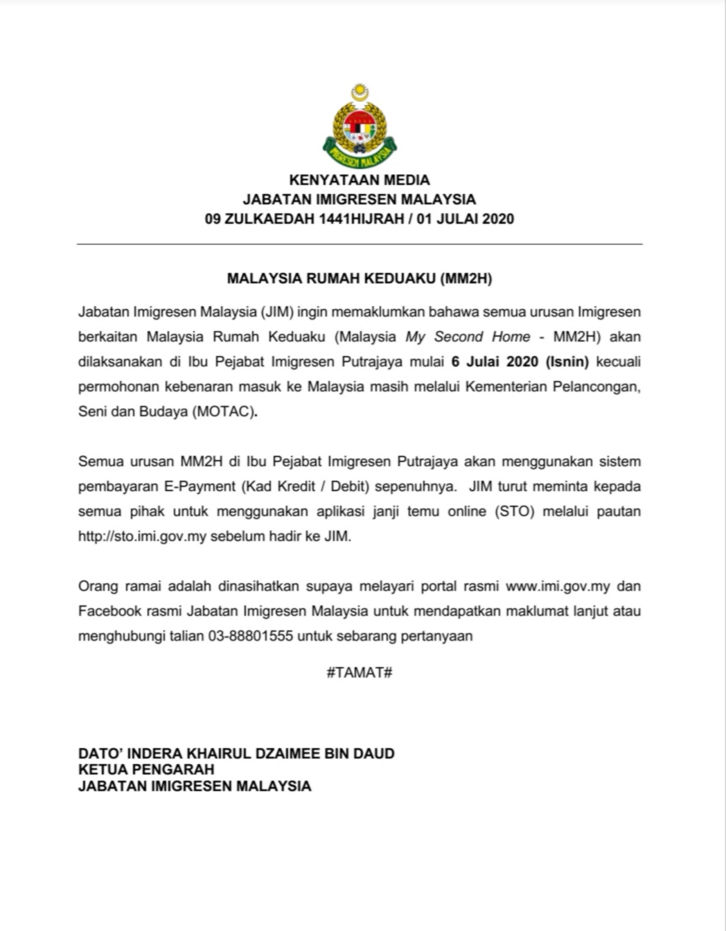 Imigresen Malaysia Auf Twitter Kenyataan Media Jabatan Imigresen Malaysia 09 Zulkaedah 1441hijrah 01 Julai 2020 Malaysia Rumah Keduaku Mm2h Imigresen Jim Covid19 Herocovid19 Frontliner Stayathome Staysafe Dudukrumah Kitajagakita