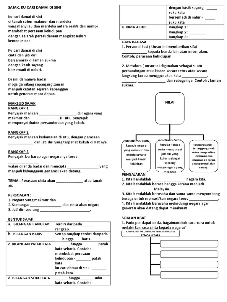 Sajak Kucari Damai Di Sini Tingkatan 2 Quiz Quizizz