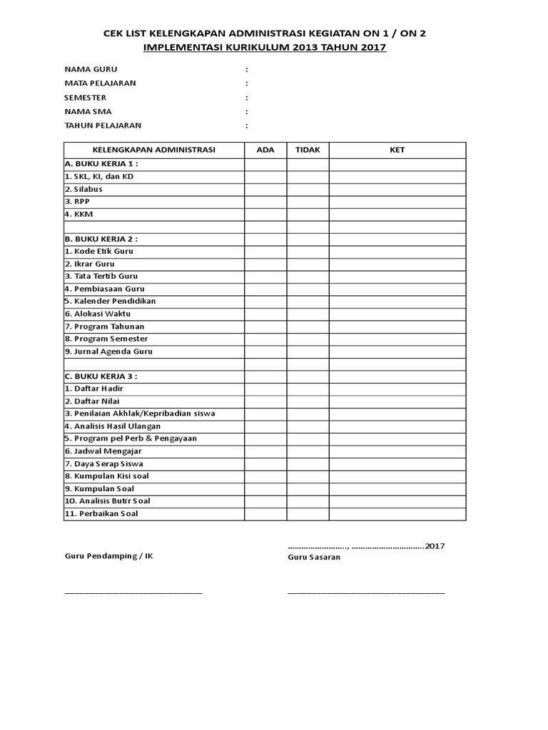 1 Administrasi Yang Harus Di Penuhi Guru Sasaran K13