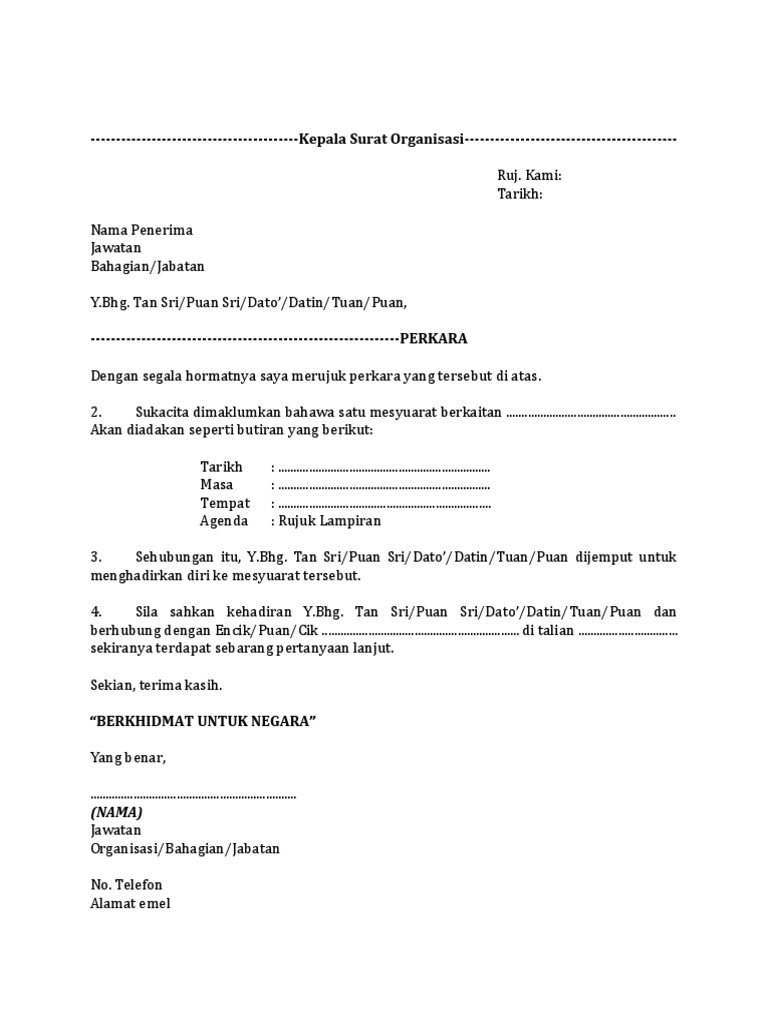 Surat Rasmi Kepada Kementerian Pelajaran Malaysia Kebaya Mude