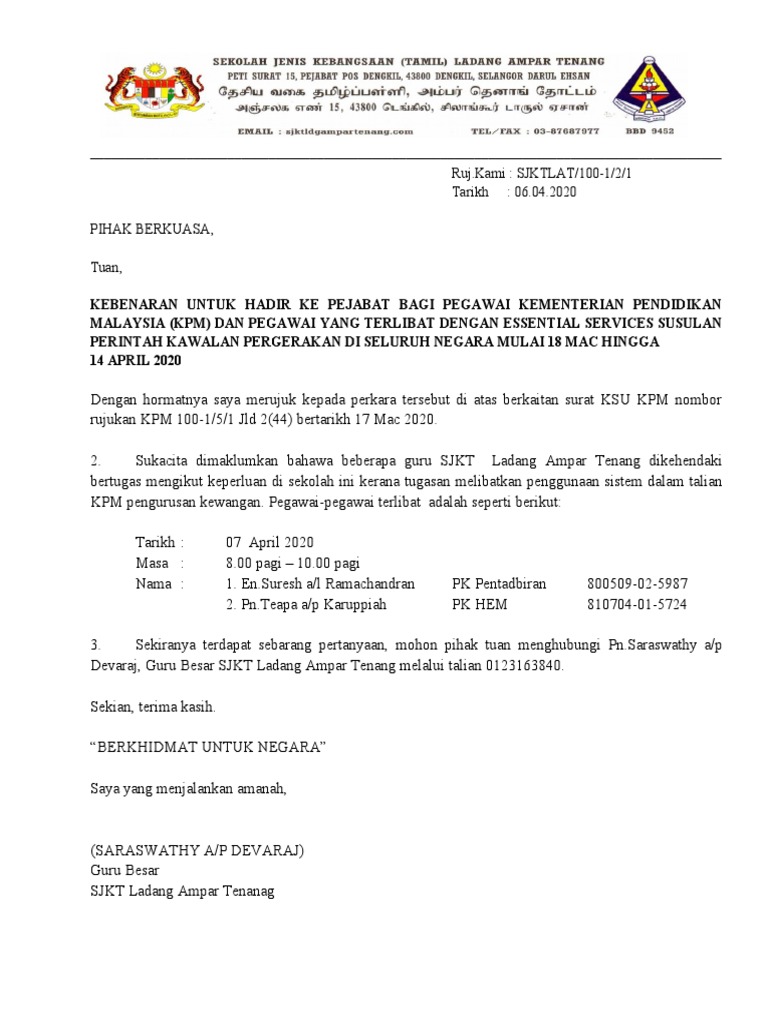 Ruj Kami Sjktlat 100 1 2 1 Tarikh 06 04 2020 Pihak Berkuasa Tuan