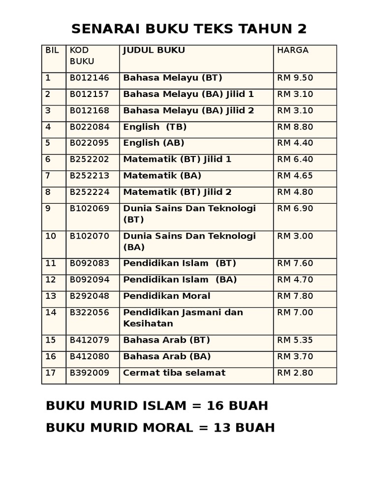 Senarai Buku Teks Tahun 2