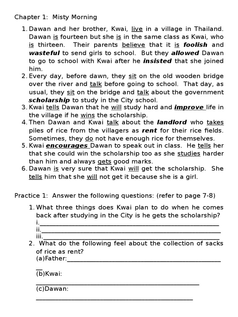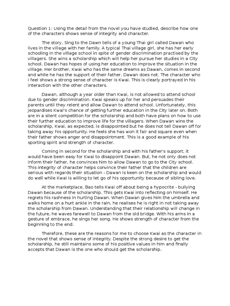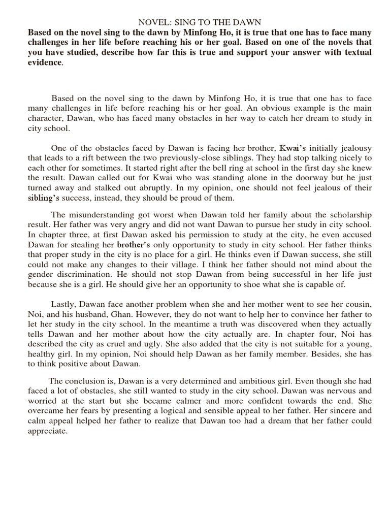 Spm Novel Sing To The Dawn Sample Answer A Character You Sympathise With