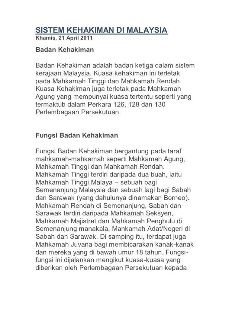 32 Sistem Kehakiman Dan Perundangan Di Malaysia Satu Wawasan