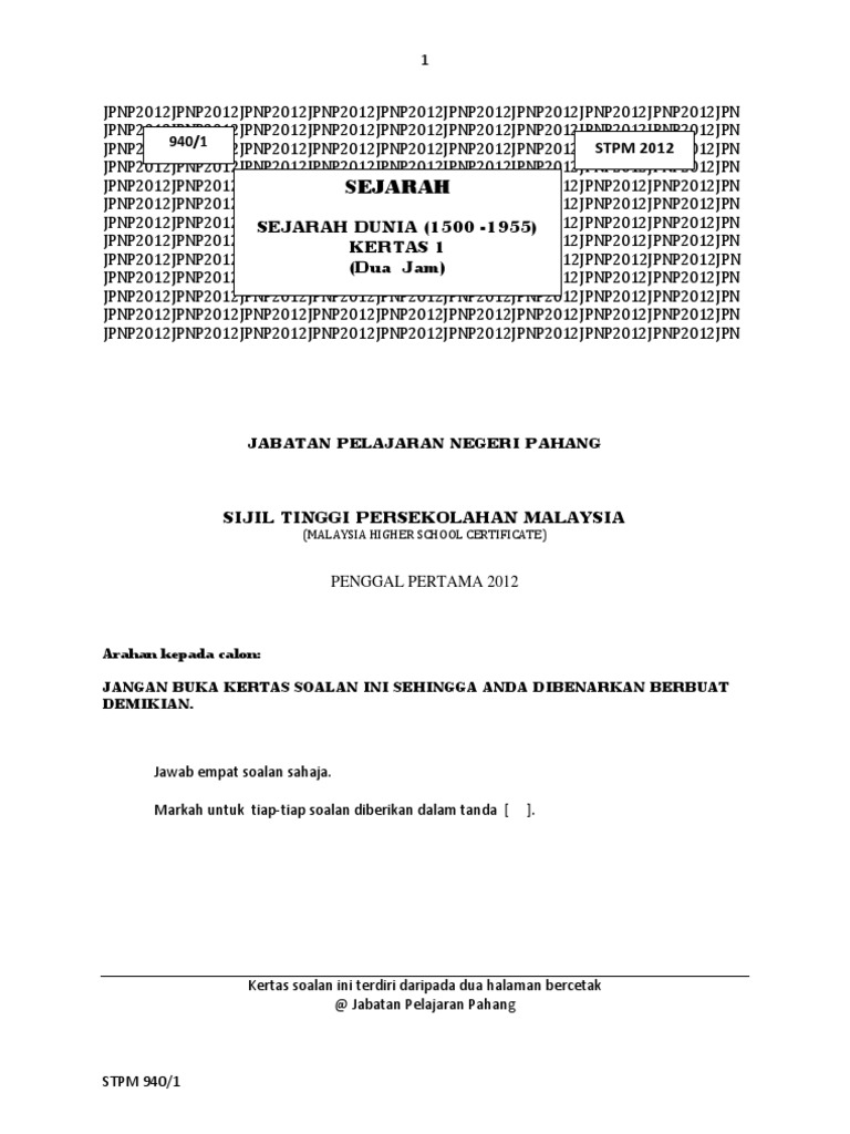 Soalan Peperiksaan Percubaan Sejarah Stpm 2019 Penggal 1 Negeri Pahang