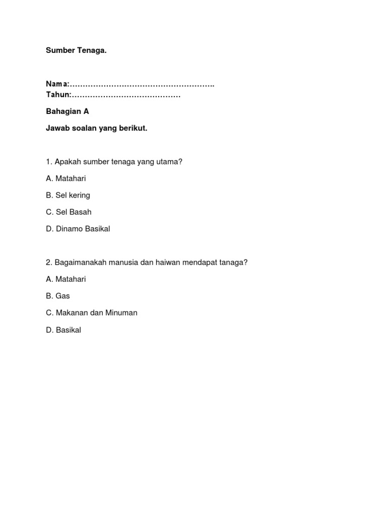 Soalan Latihan Sains Tahun 5 Tenaga Selangor L Cute766