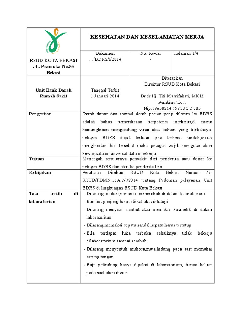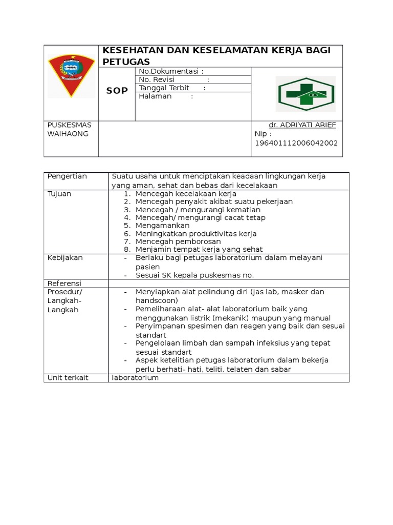 Sop Kesehatan Dan Keselamatan Kerja Bagi Petugas