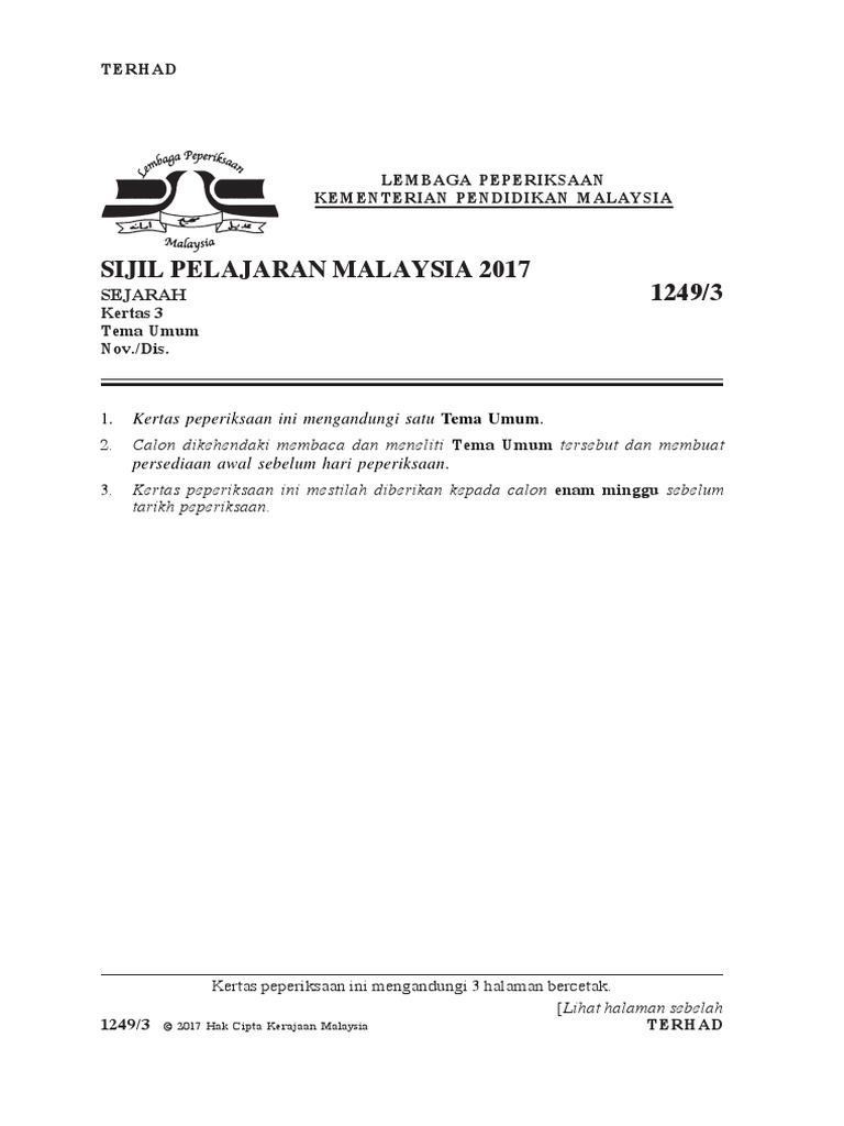 Tema Umum Sejarah Kertas 3 Spm 2017