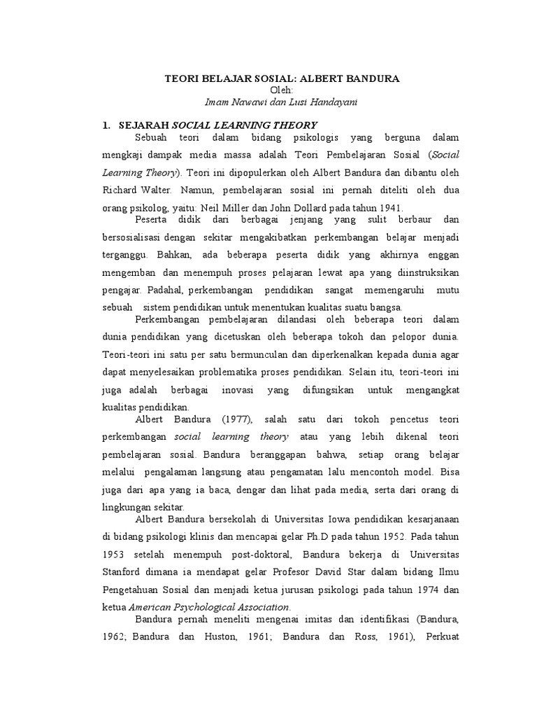 Teori Belajar Sosial Albert Bandura Oleh Imam Nawawi Dan Lusi Handayani Pdf Download Gratis