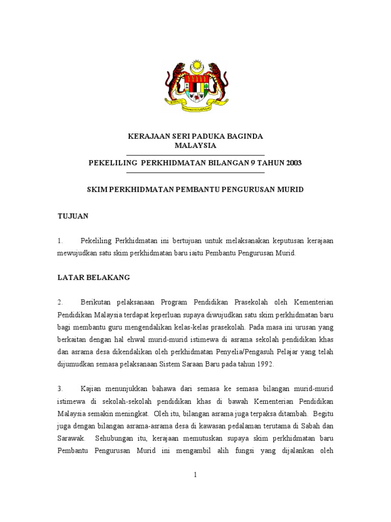 Contoh Nota Serah Tugas Pembantu Pengurusan Murid Prasekolah