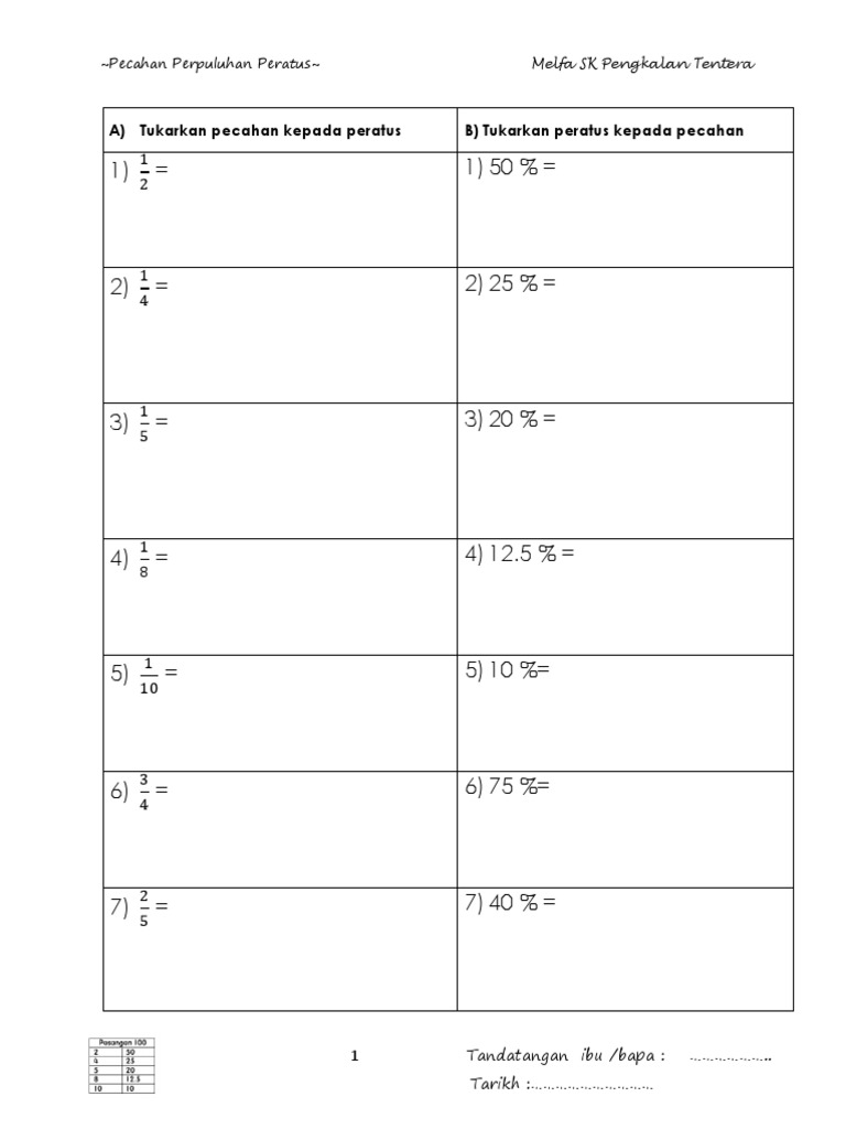 Tukarkan Pecahan Kepada Perpuluhan Tahun 5